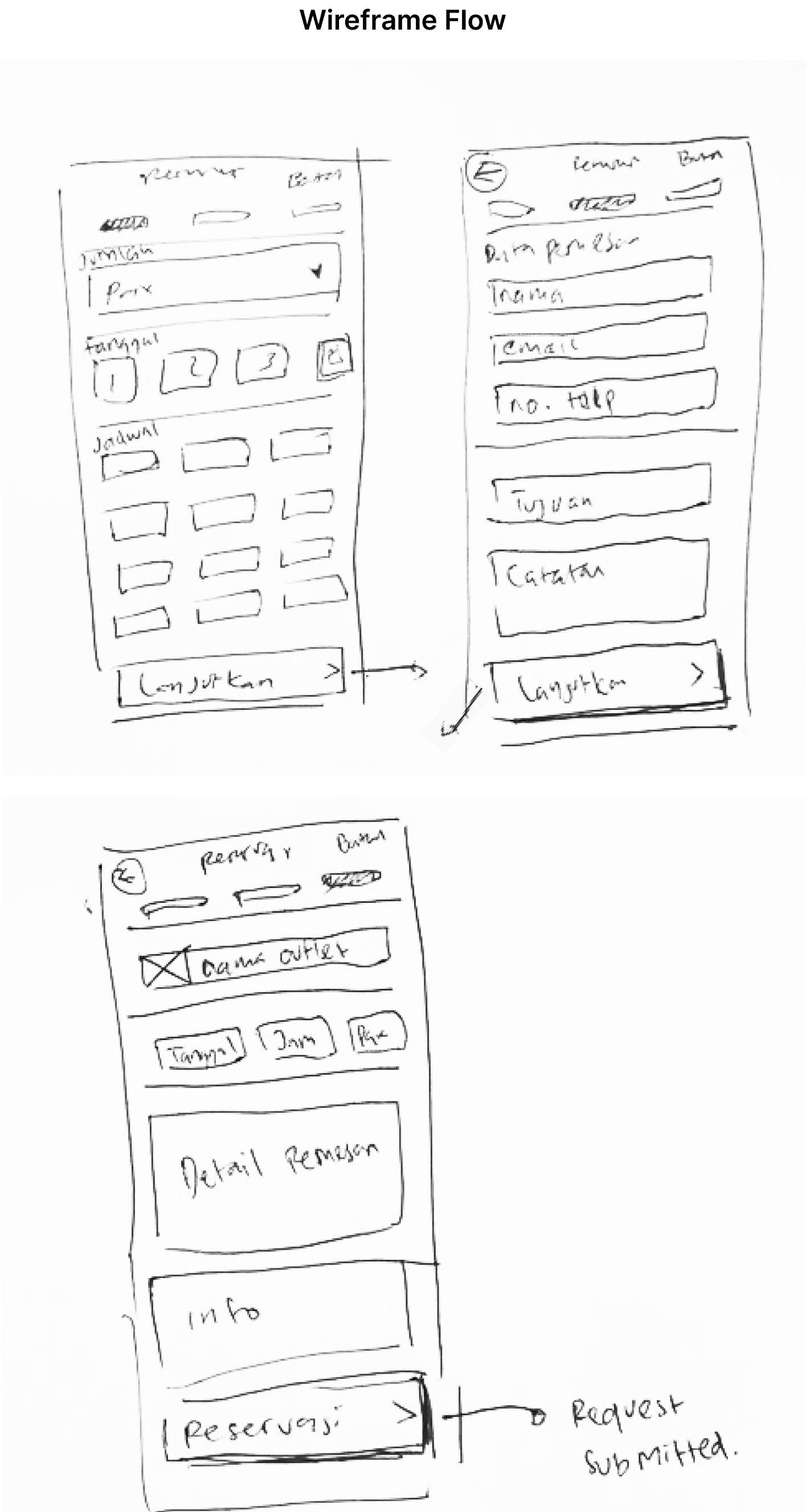 To ensure that the flow created meets the needs of ESO users, I have made rough sketches of what is required on the reservation page as well as its flow. These sketches outline the main screens alternatives, and the chosen one, Personal Information form page, and as well as the summary page.