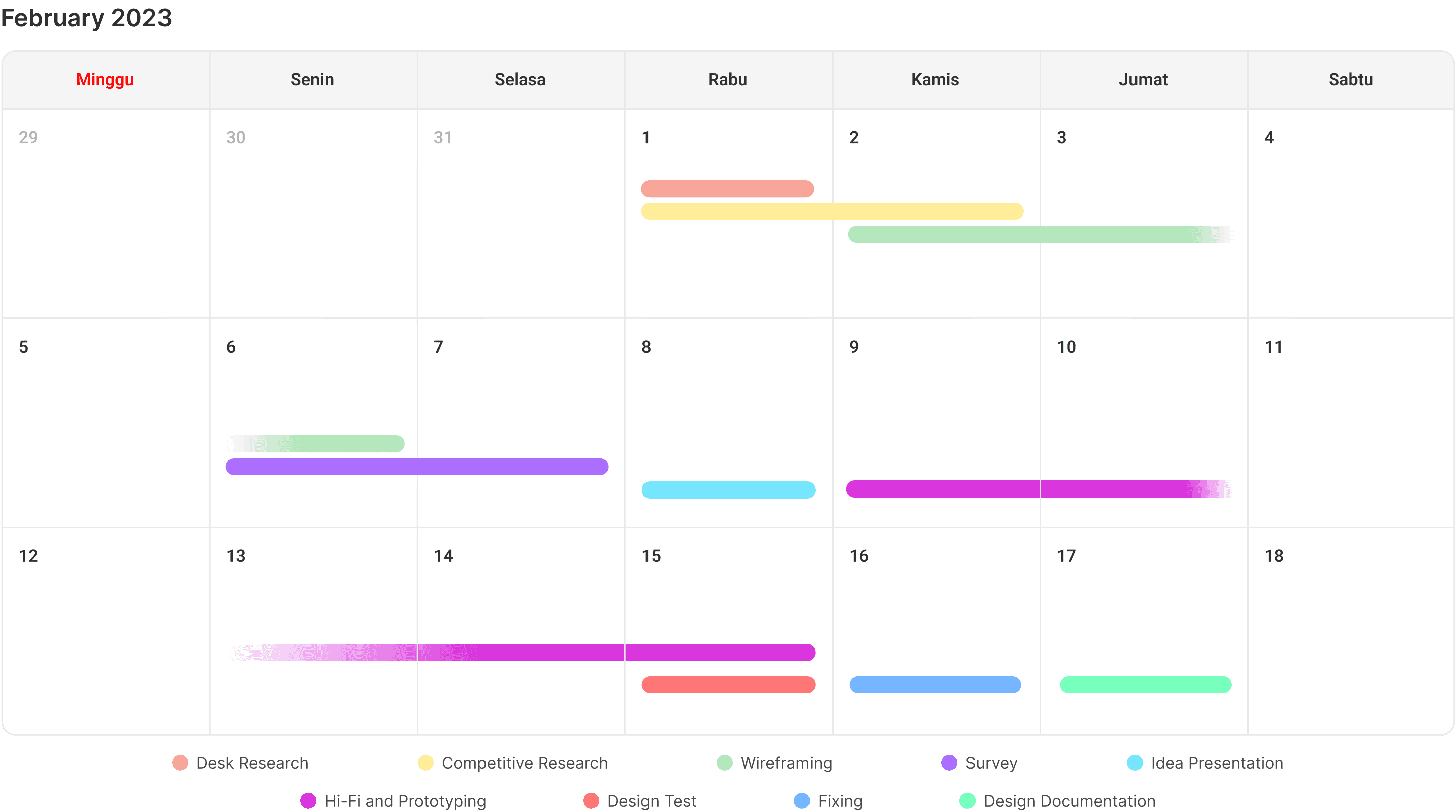 The timeline below outlines the entire process from Research, Mockup creation, to Testing.