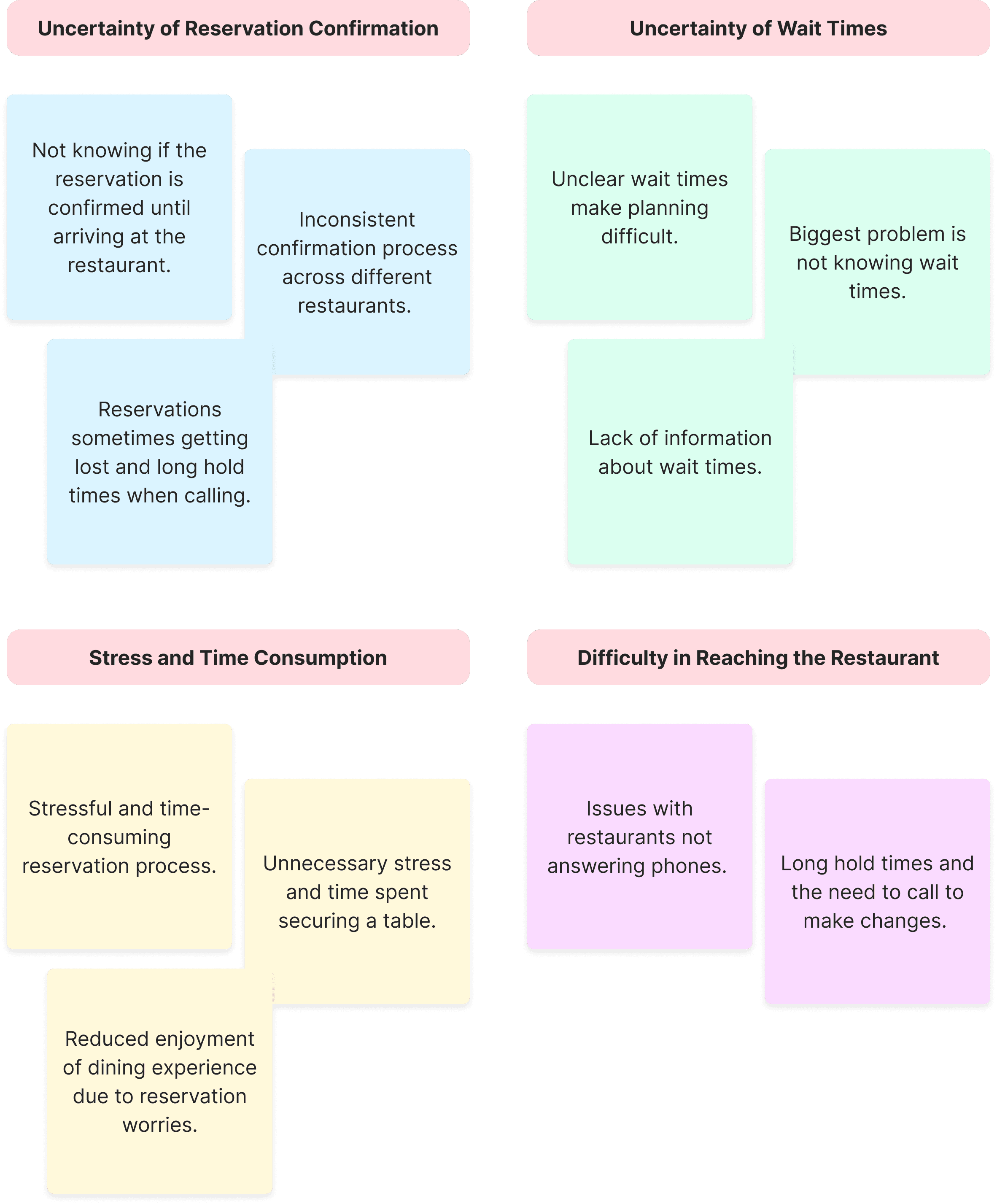 From the interview results, I mapped the existing pain points and grouped them based on their similarities.